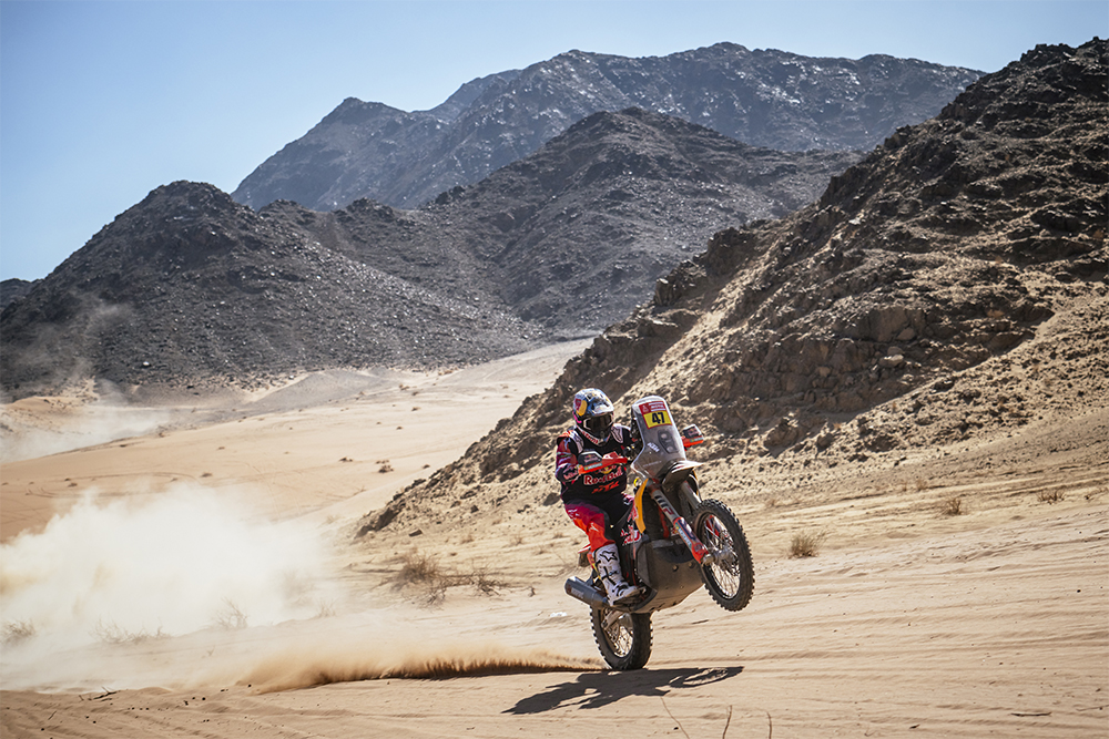 Top 10 senza sorprese che vede tutti i top rider a completarla. Skyler Howes cade durante il prologo, rompe il roadbook e senza indicazioni finisce 44esimo, fortunatamente senza danni rilevanti a pilota e moto, l’americano avrà l’arduo compito di aprire il tracciato domani visto il suo cattivo piazzamento tra i Rally GP.