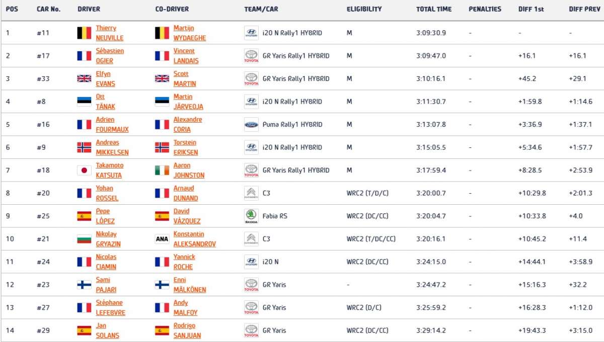 Chissà se proprio la consapevolezza di avere sia Ogier che Rovanpera a mezzo servizio, ha dato a Neuville quel pizzico di convinzione in più. Ancora è presto per esprimere giudizi, ma l’equipaggio numero 11 di Hyundai Motorsport è sicuramente sembrato il più in forma anche oggi.