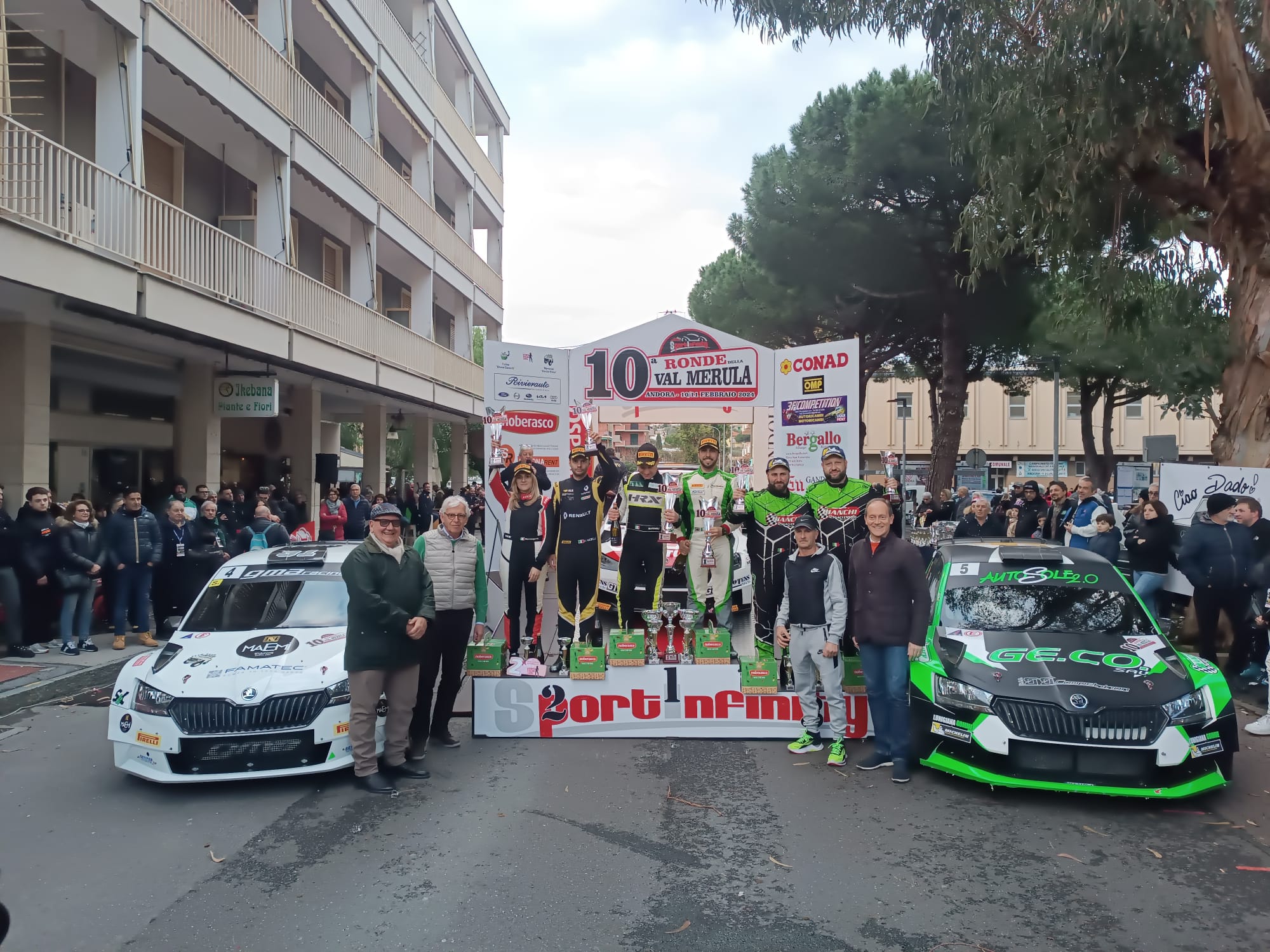 Bis di Fabio Andolfi e Manuel Fenoli alla 10° Ronde della Val Merula. Il pilota savonese ed il navigatore bresciano hanno trionfato per il secondo anno consecutivo sulle strade liguri a bordo di una Skoda Fabia RS Rally2 curata dal team MS Munaretto, gommata Pirelli.