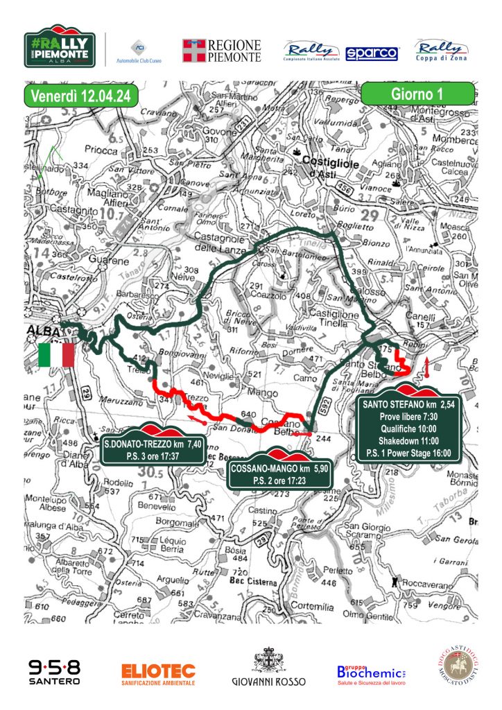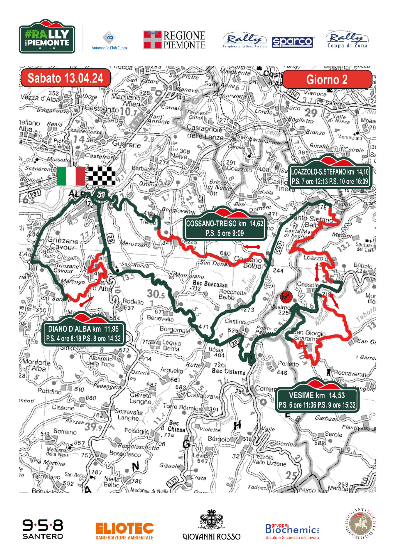 Oltre alla già citata “Cossano –Trezzo” il Rally Regione Piemonte 2024 si snoderà lungo i parziali di Loazzolo– Santo Stefano, in una versione inedita con partenza nei pressi di Borgata Creviolo, proseguendo con la prova di Vesime, dove il via è previsto dall’abitato di Cessole e lo stop a San Giorgio Scarampi .