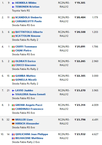 Questo in quanto poi, in occasione del primo riordino della gara, e quindi dopo che gli equipaggi avranno affrontato le prime 3 prove speciali, verranno riordinati, sia prima del secondo giro che prima del loop finale, in base alla classifica provvisoria.