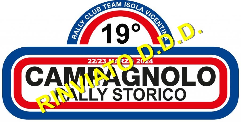 È con rammarico che il Rally Club Team comunica il rinvio a data da destinarsi del 19° Rally Campagnolo e 15° Campagnolo Historic, rally di regolarità che si sarebbero dovuti disputare venerdì 22 e sabato 23 marzo prossimi.