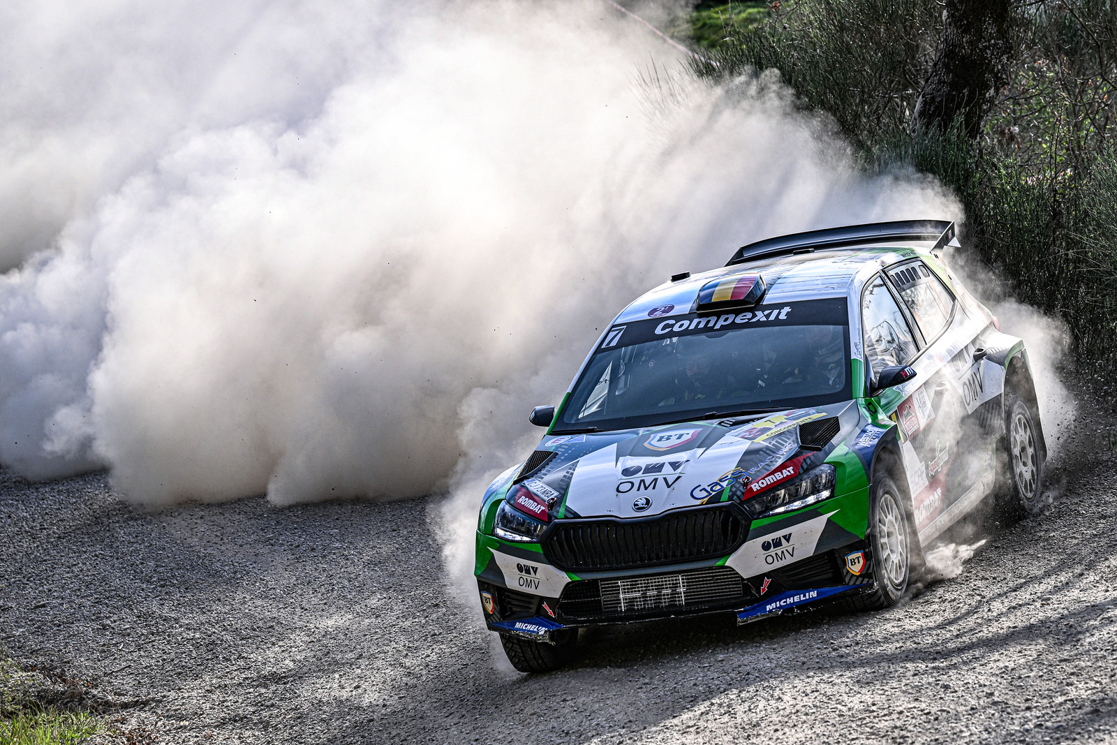 Alle sue spalle ha chiuso, a soli 1.6 secondi di distacco, il bravo Simone Tempestini, rumeno “d’adozione”, in coppia con Sergiu Itu, su Skoda Fabia RS, dopo una gara passata in gran parte da leader.