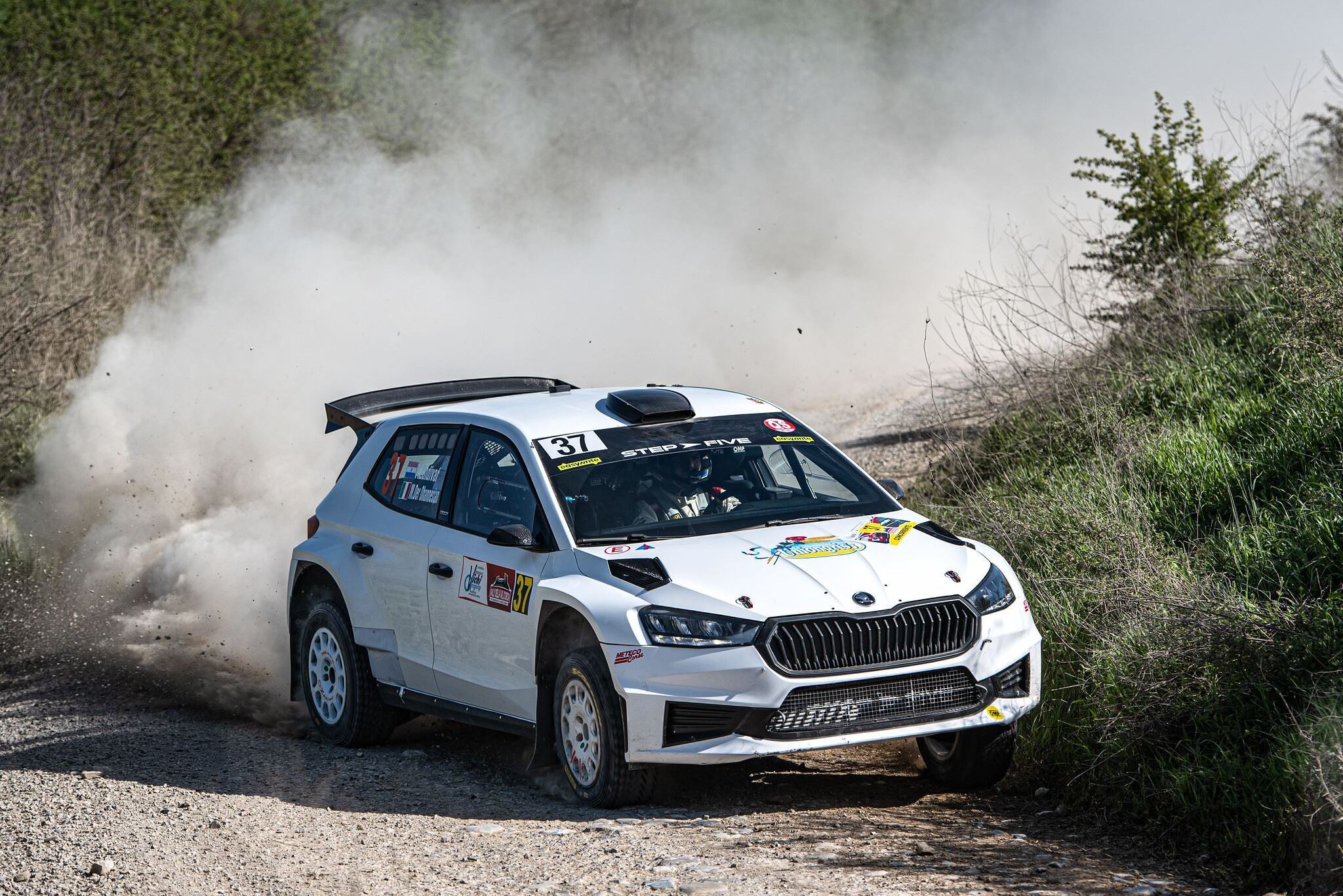Gli equipaggi stranieri, non iscritti al CIRT, erano infatti trasparenti ai fini del Campionato, e così in testa al Tricolore Terra ora si trova Alberto Battistolli, in coppia con Simone Scattolin, qui quarto al traguardo a 5.2 secondi dal leader su Skoda Fabia RS. Il giovane driver vicentino ha sofferto particolarmente nel finale, dopo due giorni all’assalto che lo avevano visto protagonista anche con lo scratch nella quarta speciale.