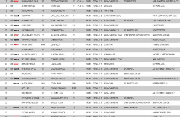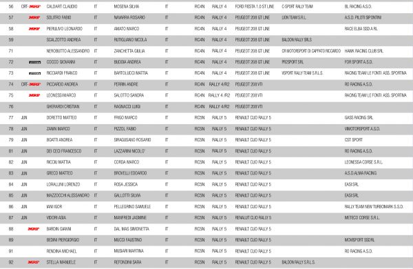 Iscritti tutti i principali protagonisti, sia per quanto riguarda la Classifica Assoluta (tra gli assenti, iscritti alla serie, mancheranno solamente Gianesini, Simone Romagna e Squarcialupi), sia per le altre graduatorie con la presenza confermata di Matteo Fontana, leader provvisorio nella Coppa 4WD con la sua Ford Fiesta Rally3, Tamara Molinaro, leader nel Femminile, e Alessandro Olevano dominatore, al momento, con la Suzuki Swift, della Coppa riservata alle Classi N – 2 Ruote Motrici.