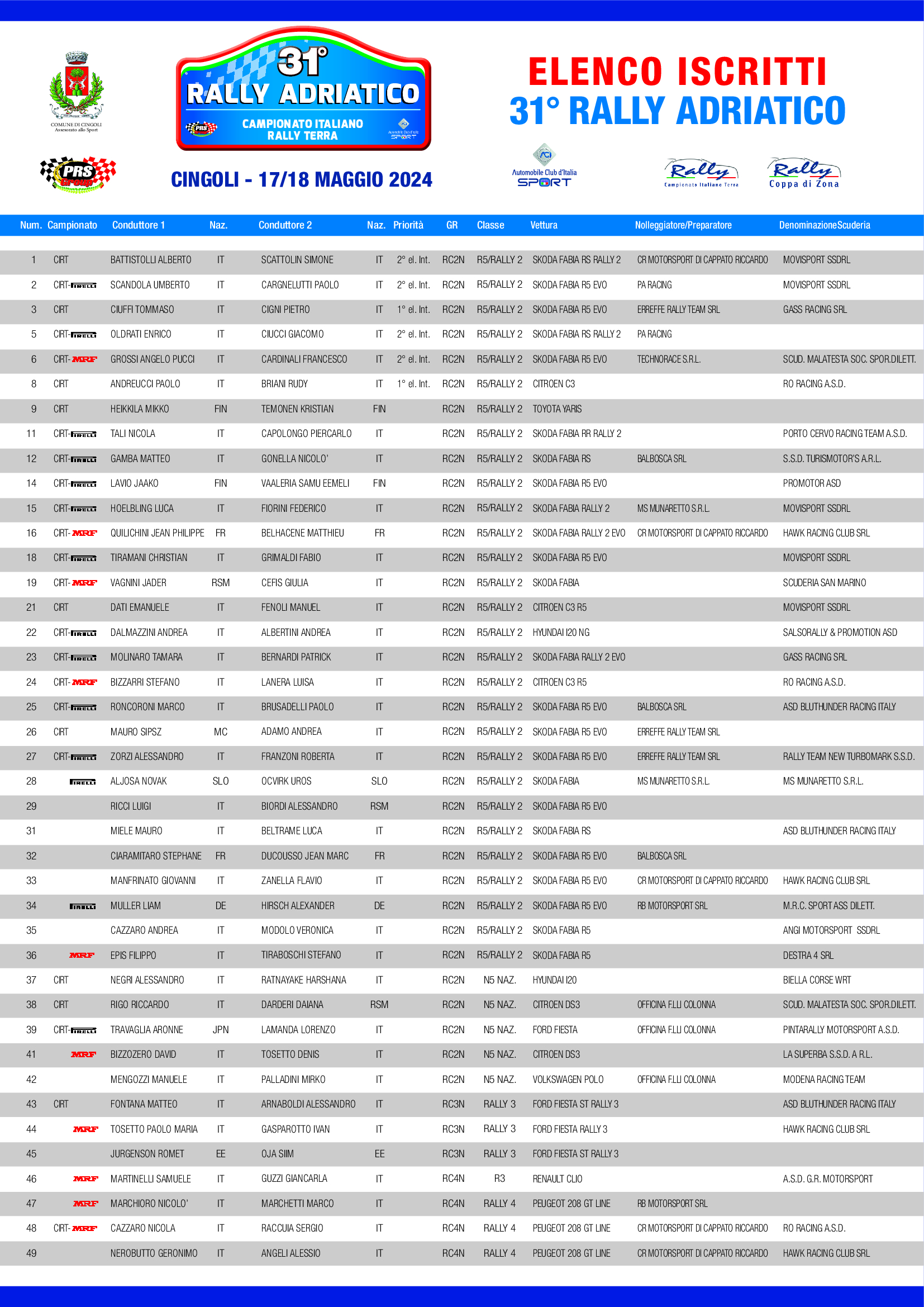 Elenco Iscritti 31° Rally Adriatico