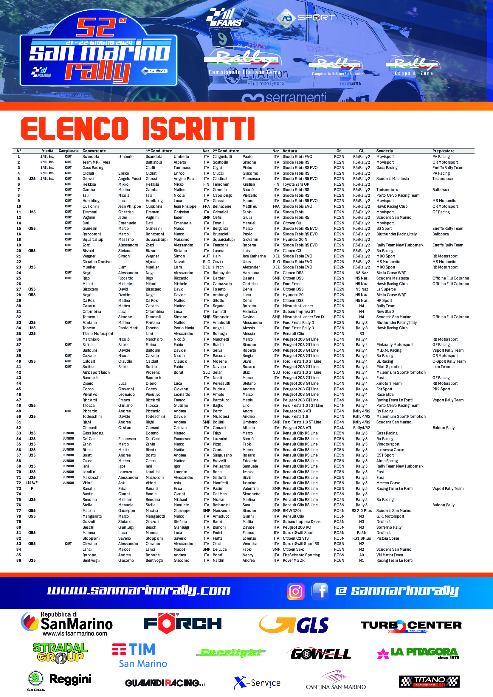 Elenco Iscritti 52° San Marino Rally