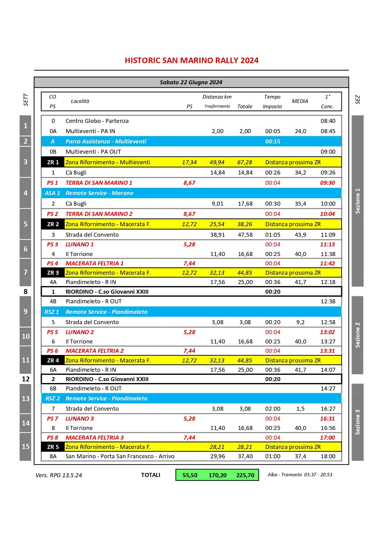 Questa la Tabella Tempi e Distanze del 9° San Marino Rally Historic: