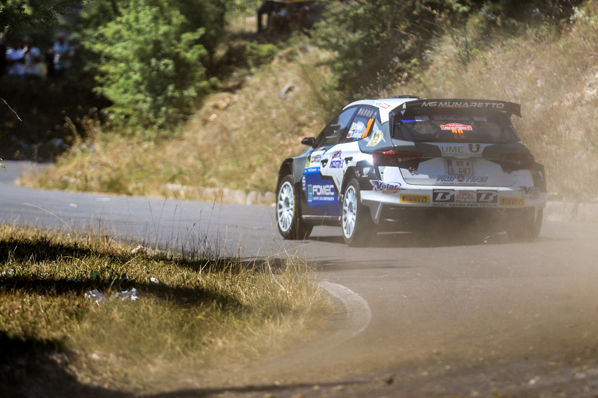 Crugnola-Ometto hanno infatti staccato il miglior tempo precedendo di 1.8 secondi Simone Campedelli, in coppia con Tania Canton sulla Skoda Fabia RS Rally2 di Step Five Motorsport, e di 2.5 secondi Efren Llarena e Sara Fernandez, su un’altra Skoda, i migliori dell’ERC in questa speciale.