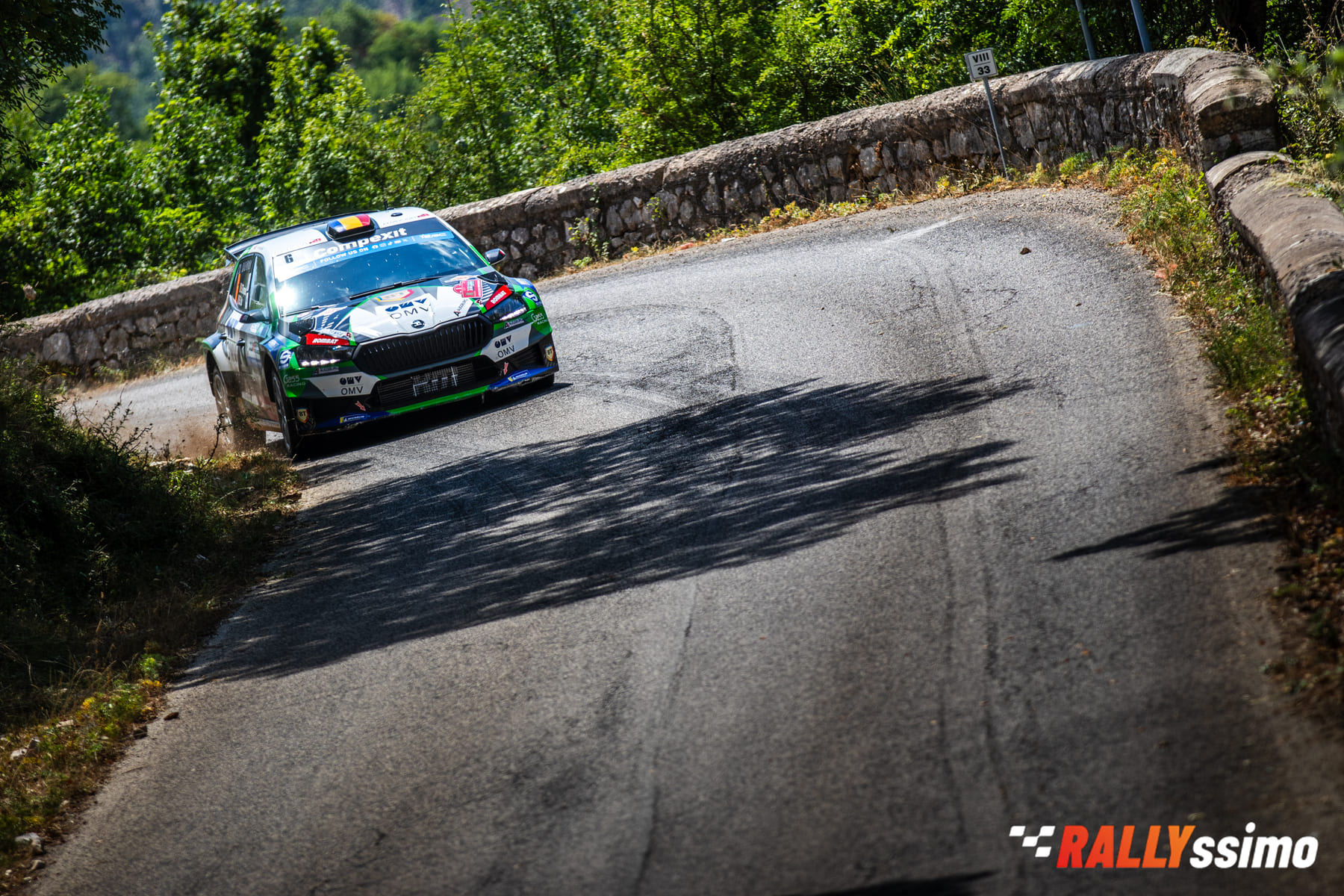 I concorrenti, dopo il breve riordino di Subiaco, si spostano sull’ultima prova del giro mattutino, la “Monastero-Jenne” di quasi 9 chilometri che riesce a partire, nonostante il problema sulla speciale precedente, in orario. E arriva la zampata di Andrea Crugnola che, in coppia con Pietro Ometto sulla Citroen C3 Rally2, precede di un soffio, solo 1 decimo, Simone Campedelli con Tania Canton sulla Skoda Fabia RS Rally2 e di 1.1 secondi il veloce Roberto Daprà, sempre su Skoda RS, in coppia con Luca Guglielmetti.