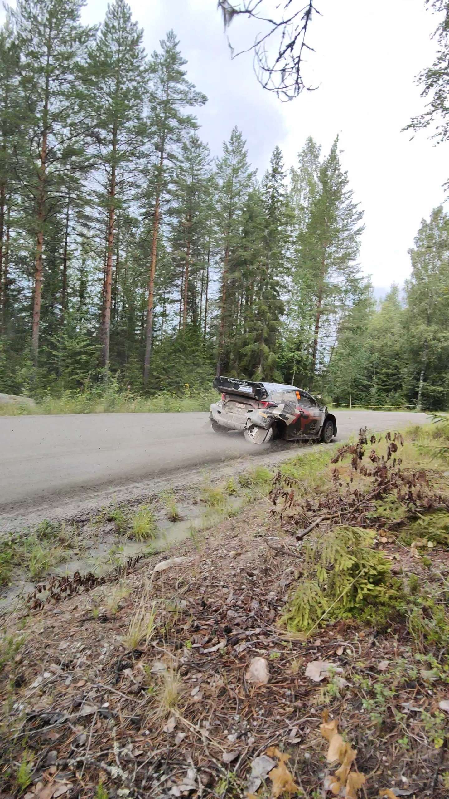 Una banale toccata alla posteriore destra su di un albero ha portato al giapponese ad un testacoda e al cedimento della sospensione posteriore destra della propria Yaris Rally1 numero 18.