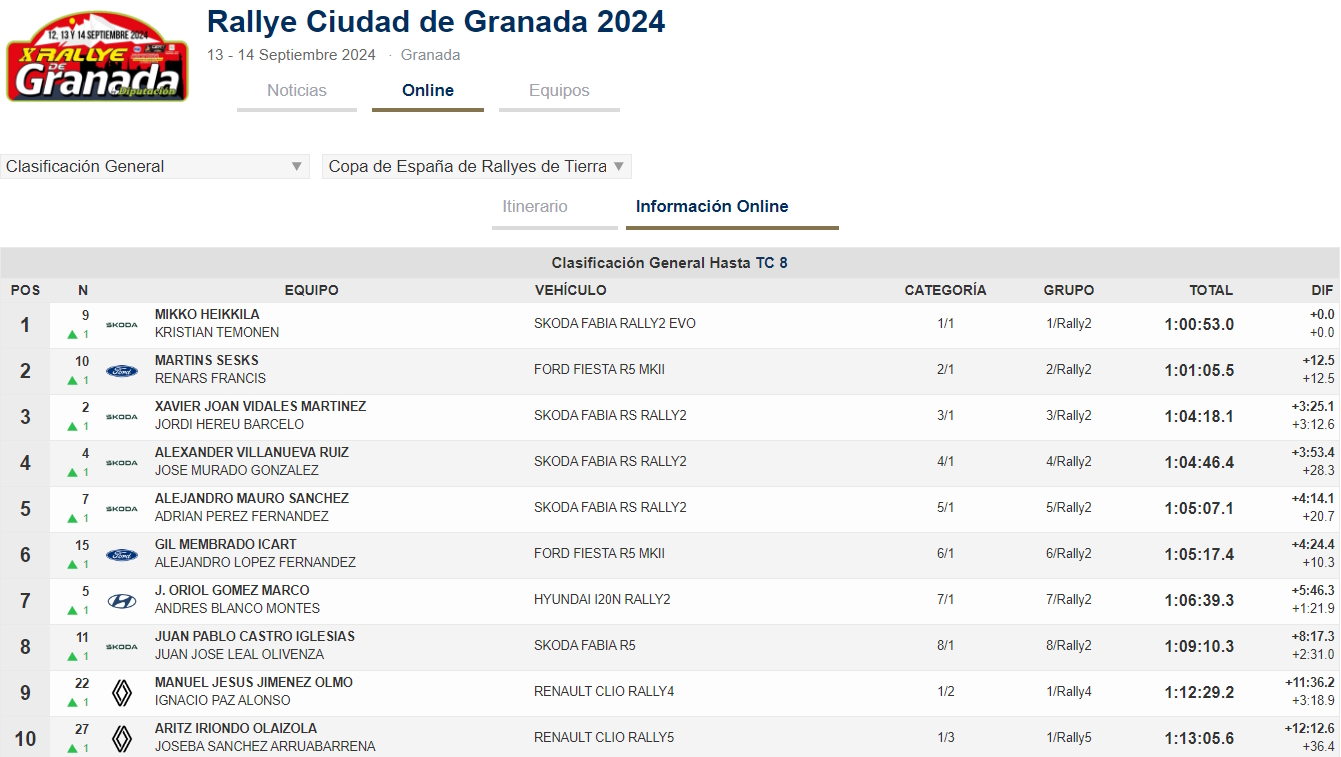 Il miglior pilota spagnolo è stato Xavi Vidales, che ha accusato un distacco da Heikkilä e Sesks di più di tre minuti, seguito dal leader della serie sterrata spagnola, Alexander Villanueva, quarto alla fine.