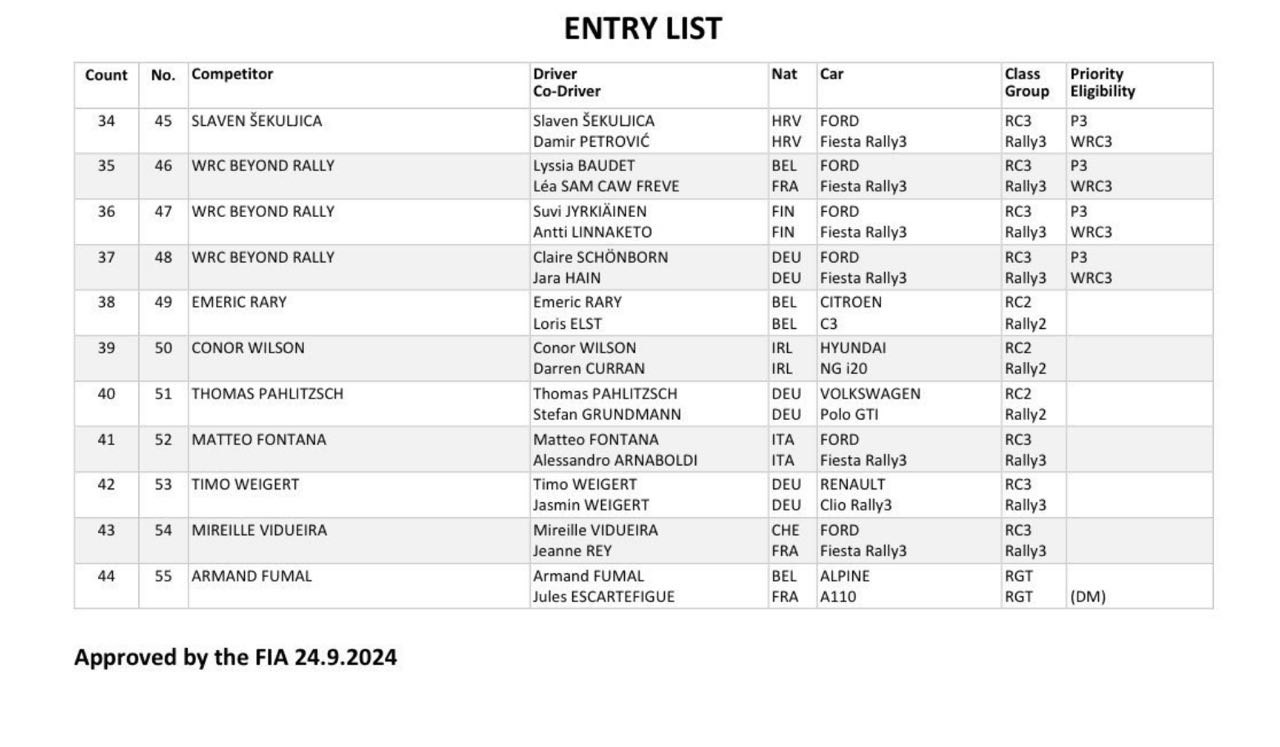 Un duo di vetture Ford che vedrà la partecipazione anche di Jourdan Serderidis che, insieme e Frederic Miclotte, saranno in gara con una Ford Puma Rally1 in versione non ibrida.
