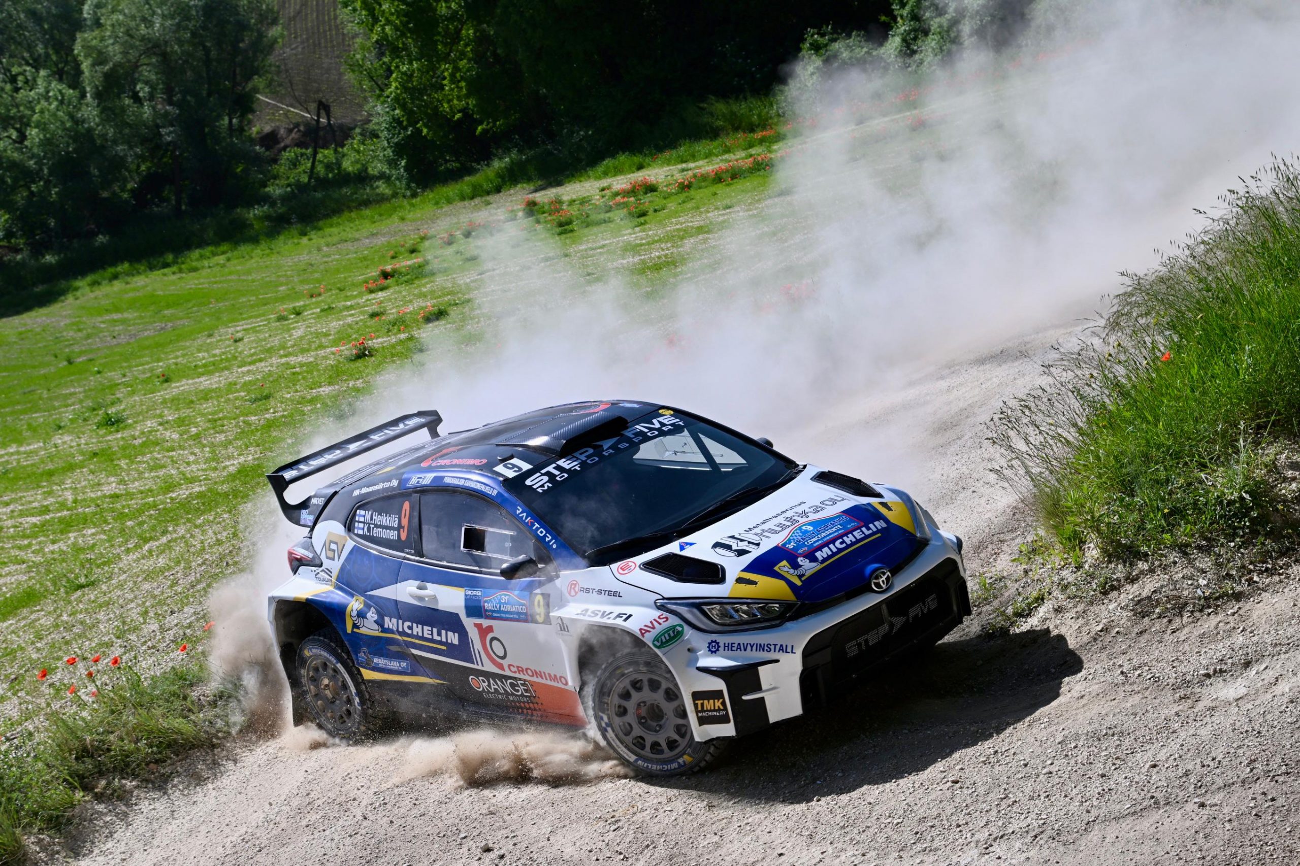Attualmente terzo “lo straniero”, il finlandese Mikko Heikkila, l’unico del lotto dei pretendenti al titolo con una vettura “non-Skoda”, la sua Toyota GR Yaris Rally2 che lo ha portato a vincere a Foligno ed a San Marino, con 36 punti.