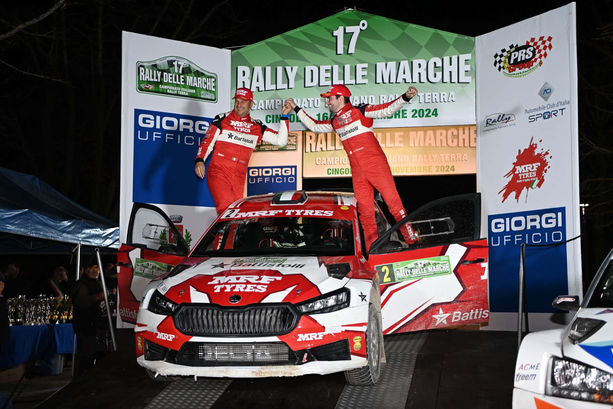 MRF Tyres Europe ha conquistato, al 17° Rally delle Marche, il quarto titolo consecutivo nel Campionato Italiano Rally Terra. Dopo i tre sigilli ottenuti con Andreucci nel 2021, 2022 e 2023 a conquistare, per la prima volta, la corona Tricolore sono Alberto Battistolli e Simone Scattolin che hanno concluso il weekend con il successo nella gara marchigiana, ultima del calendario.