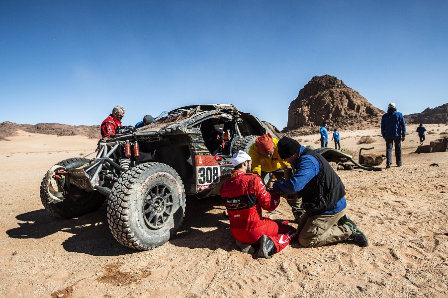 Da segnalare poi anche un incidente sul finale di tappa in casa Toyota Gazzo Racing, con de Villiers e Variawa che si sono scontrati a causa della fitta polvere. Equipaggi inculumi, ma con le auto che sono rimaste danneggiate in maniera significativa. Problemi anche per Guillaume de Mevius, che ha perso almeno 90 minuti per riparare il X-raid Mini