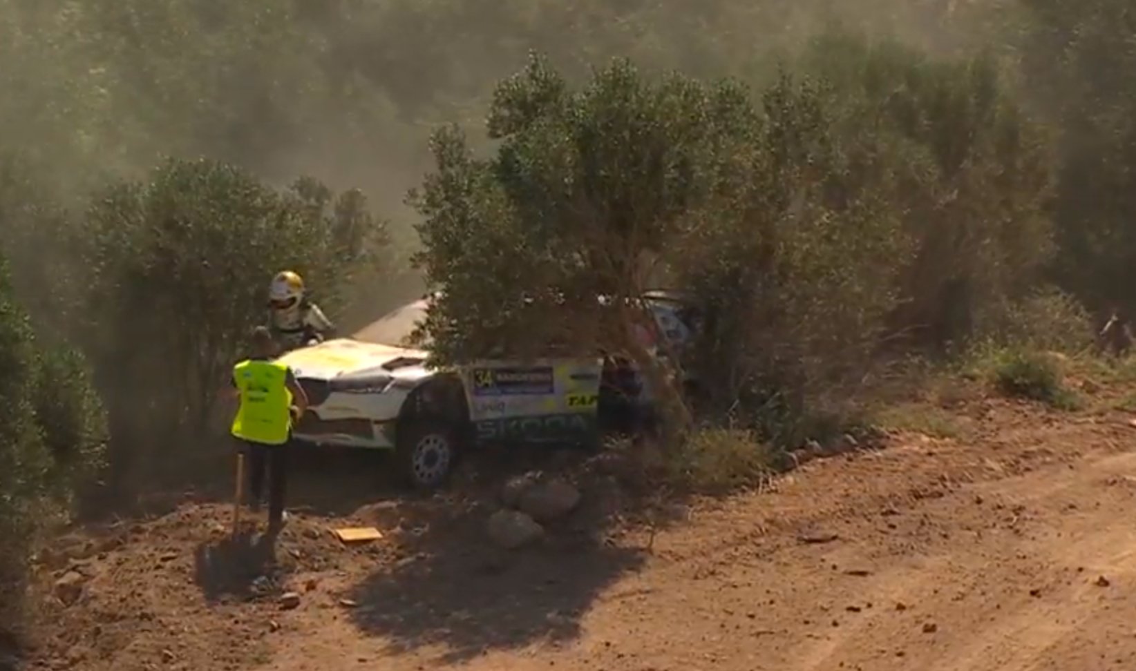 Dalle immagini tv si è potuto vedere come l’equipaggio finnico abbia commesso un piccolo errore di valutazione della linea in un tratto in discesa, perdendo il posteriore e finendo girati a bordo strada e senza la possibilità di ritrovare la sede stradale.