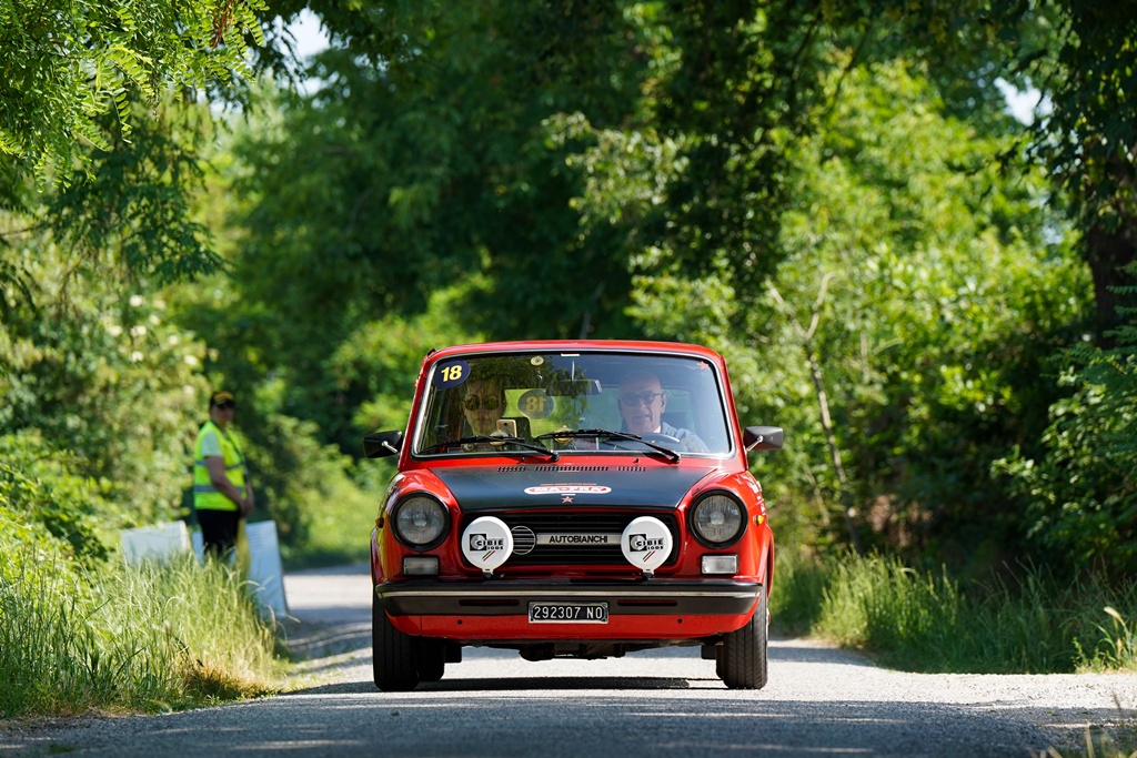 Alle 9.01 è partita la prima vettura puntando in direzione Castelfranco Veneto, città che ha visto il passaggio nella pittoresca Piazza Giorgione. Al termine delle prime venti prove al comando provvisorio era l’Autobianchi A112 Abarth di Passanante e Buccioni con 7 penalità di vantaggio sugli Scapolo e 10 sui Tumbarello. La gara proseguiva col settore successivo il cui epilogo era previsto a Follina, dove gli equipaggi dopo 47 prove si sono fermati per la pausa pranzo con una classifica che propone appaiati al comando Tumbarello e Indelicato entrambi con 113 penalità seguiti a 5 da Scapolo che a sua volta ne conta 7 di margine su Paradisi (Fiat 850 Sport); quinto è Commare a quota 131. Nel frattempo si registrano i ritiri di Riboldi su Fiat 508C e del già menzionato Guggiana.