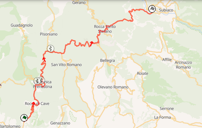 Sostituita dalla prova “Canterano – Subiaco ” da 30.59 km che coincide solo per il tratto finale e per l’arrivo ormai tradizionale nel bel borgo di Subiaco. Il video della prova lo trovi a questo link.
