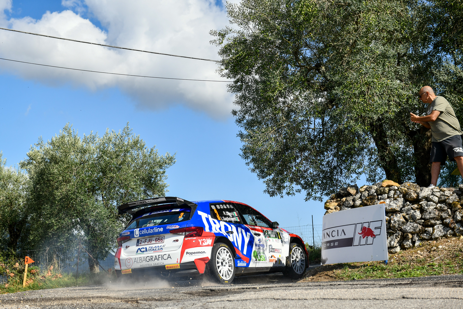 Giandomenico Basso lascia infatti il testimone a Roberto Daprà, a causa di una foratura in cui incappa nella PS8 Terelle. La sua Skoda Fabia RS Rally2 arriva allo STOP con la gomma a terra perdendo oltre un minuto e scivolando addirittura all’ottavo posto della classifica generale. Un grosso peccato considerata la giornata pressochè perfetta di ieri e la vittoria nella PS7 di stamane, dando un grosso segnale agli inseguitori.